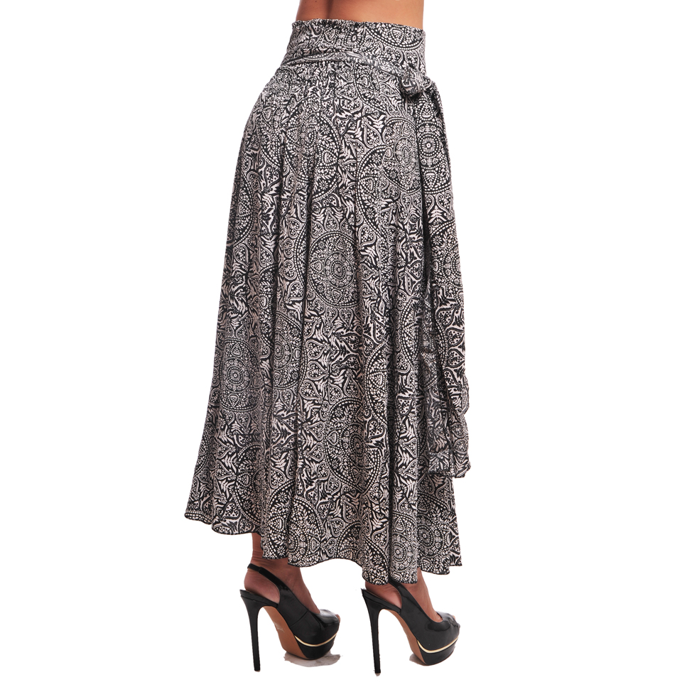 AGOTADO. Falda de corte amplio y largo maxi al tobillo, de cintura alta y cinta para anudar ancha, confeccionada en poliéster.